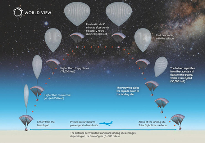World View提供的旅程约5小时,乘客不需要经过特殊培训也无需穿特别的太空服。