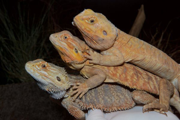 图中从下到上分别是普通的鬃狮蜥,携带了一条突变EDA基因的鬃狮蜥(het无鳞基因)和携带了两条突变EDA基因的鬃狮蜥(无鳞变异)