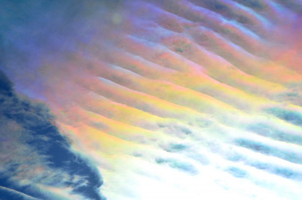 科学家叫这现象彩云'cloud iridescence' ,它的形成为一种绕射现象(Diffraction), 当小的水与冰粒子把光给分散。