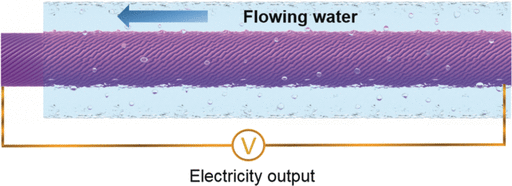 透过纳米碳管的易吸附、有电活性的特性,科学家将碳管包覆在了聚合物纤维上,接上电极,流体会自己改变纤维内的自然电荷分布,使得内部与外部的有能量差,进而产生能量。简单来说,有流体流过就能发电,只要确保有永流不止的流体,能量就会源源不绝地涌现出来。