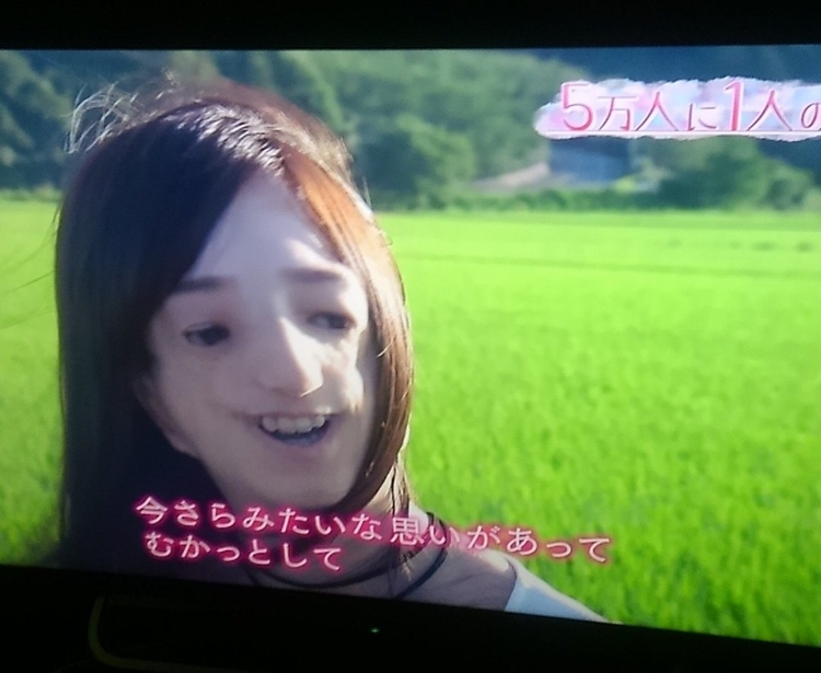 山川记代香来自日本爱知县,自幼饱受无脸症之苦,目前在东海市政府工作,日前她参与了电视台的纪录片拍摄,记录了她艰辛的成长历程。罹患无脸症的患者,通常会有结构异常的外耳、听力丧失、下眼睑缺损、非常小的下巴、颔骨位置异常、特别大的嘴、颚裂、大拇指异常小或缺损、构音问题等多重障碍。