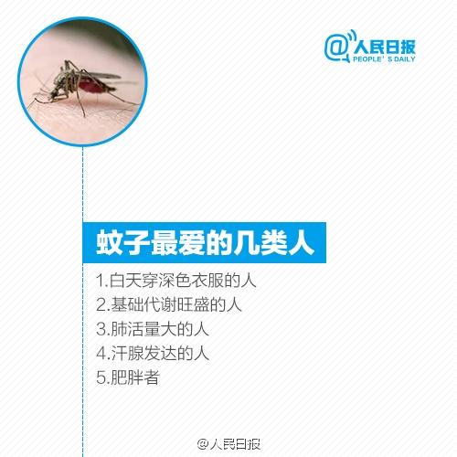 蚊子侦测和定位目标主要是靠二氧化碳、热量、挥发性化学物质等因素。通过辨别气流方向,蚊子才能锁定目标。所以,喘气较粗的胖人和爱运动的人容易招蚊子,平时要注意防蚊。