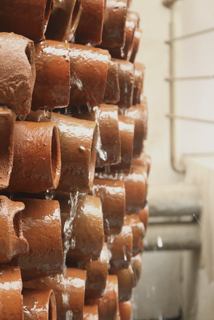 2. Ant Studio和Deki Electronics公司一起合作,他们使用金属框架来固定数百支陶土水管,排列成像蜂巢状。当这些水管吸收了水分之后,可以将热气转换成凉爽的微风。