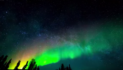 极光是在高纬度的天空中(南极或北极),带电的高能粒子和高层大气中的原子碰撞造成的发光现象。