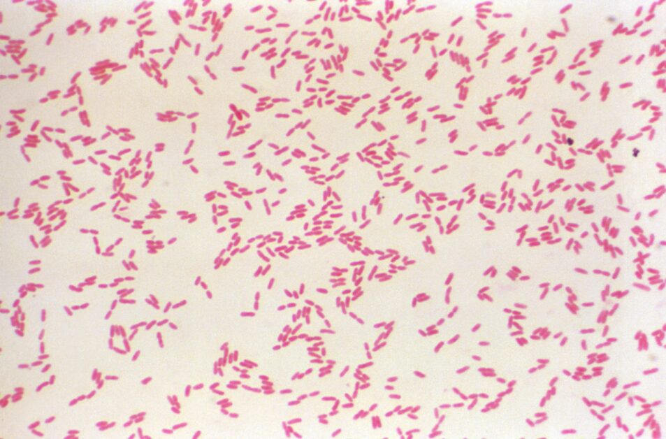 这张显微照片采用革兰氏染色技术处理,显示大量革兰氏阴性、桿状的类鼻疽伯克氏菌。图片来源:CDC Public Health Image Library