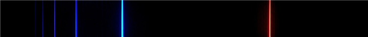 巴耳末系列前六条谱线,左侧勉强可见的两条理论上属于紫外线