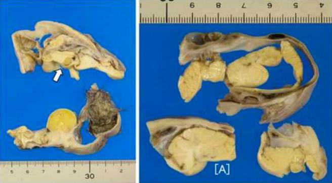 日本一名16岁少女日前进行割阑尾的手术,但医生却意外发现她的卵巢内长肿瘤,于是手术中就一同割除肿瘤,可是恐怖的是,这个肿瘤竟是一个的“小孩”,但形体只是一个完整构造的大脑,外形看起来相当可怕。