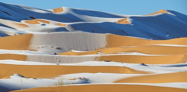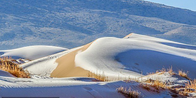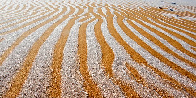 当气温降到冰点以下摄影师也趁机拍下许多摄影师也趁机拍下许多梦幻的沙漠雪照。