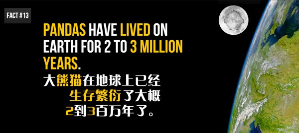 13.大熊猫在地球上已经存在了2到3百万年。(跟剑齿虎差不多一个时期。)