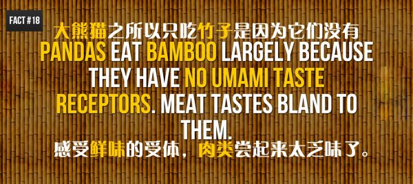 18.熊猫之所以只吃竹子是因为它们尝不到肉的鲜味。