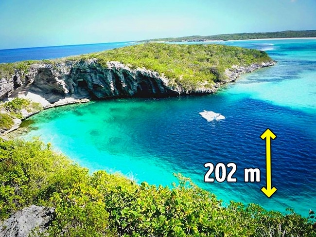 11. 迪恩蓝洞:位在巴哈马长岛南部北岸,是世界上最深的咸水蓝洞,这里也是用来训练潜水员最好的地方。