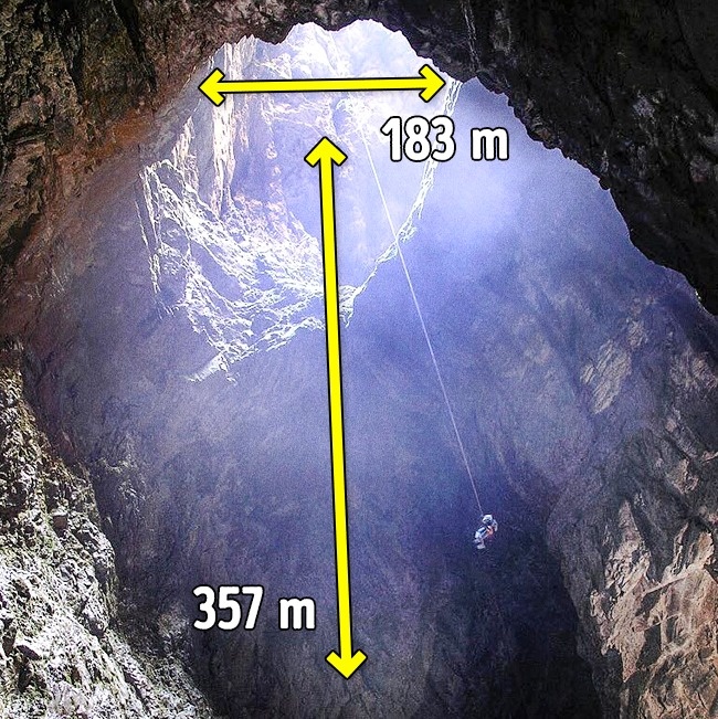 3. 天坑地缝:这个天坑是在12.8万年前所形成,这是世界上最深的天坑,也是人们喜欢跳伞的绝佳地点。