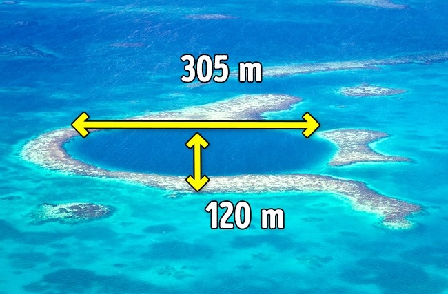 10. 大蓝洞:这个水下洞穴位在加勒比海灯塔礁的中心,是在冰河时期所形成,也是全世界最大的水下洞穴,目前是个潜水胜地。