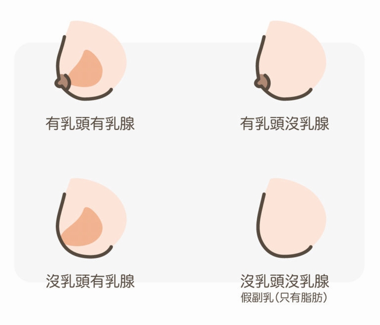 如同大家知道,医学家都是分类狂啦!毕竟没有明确的分类,就没办法精准的讨论,所以如果你身边有念医学的朋友,对什么东西都要求知道明确的定义,对于搞不清楚的东西就一定要分类,即使分类成“搞不懂的那一类”,他也一定坚持要分出来的话,请不要责怪他,因为我就是这样…所以连你觉得很简单的副乳,其实也是有分类的,大家可以对照图看。