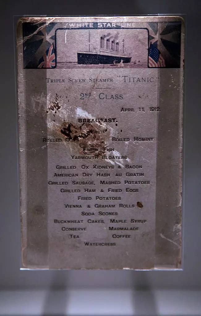 15. 在1912年4月11日,也就是船沉没的3天前,二等舱的乘客吃了煮玉米、烤牛肉、内脏和培根、炸马铃薯、荞麦蛋糕等。
