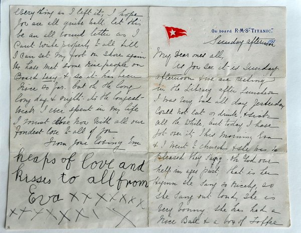 14. 这是一封真实的信件,是幸存者埃斯特·哈特 (Esther Hart) 在泰坦尼克号沉没的当天所写的,里面她写到她和女儿会在隔天晚上,在船上的宴会中唱歌。不过悲伤的是这一切都实现不了了。