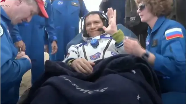 卢比奥带着灿烂的笑容被抬下飞船。在太空待了371天后,卢比奥表示“回家真好”。