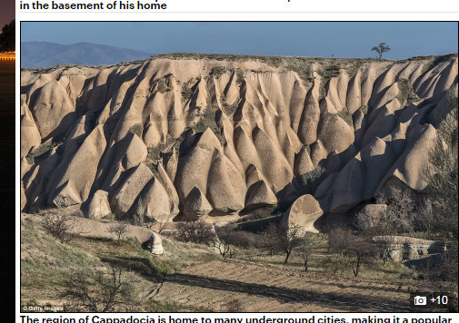 这名住在土耳其安那托利亚(Anatolia)的男子,在1963年时计划改装家中地下室,没想到在打掉其中一面墙之后,发现一座千年碉堡,顺着通道走下去,还有厨房、教堂、坟墓、学校。专家研判这个碉堡是在阿拉伯及拜占庭战争时期所建的地下碉堡。