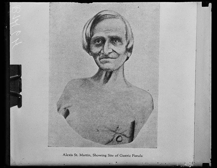 博蒙特看着男子腹部的大洞,只能简单移除子弹和伤口处理。当时还是学徒的他,对这种情形束手无策。然而,在博蒙特的护理下,圣马丁竟然命大地倖存下来。不过他的胃部也因此留下了一个永久性的开口,这是枪伤在他身体上留下的一种“隧道”,又称为瘘管(fistula)。