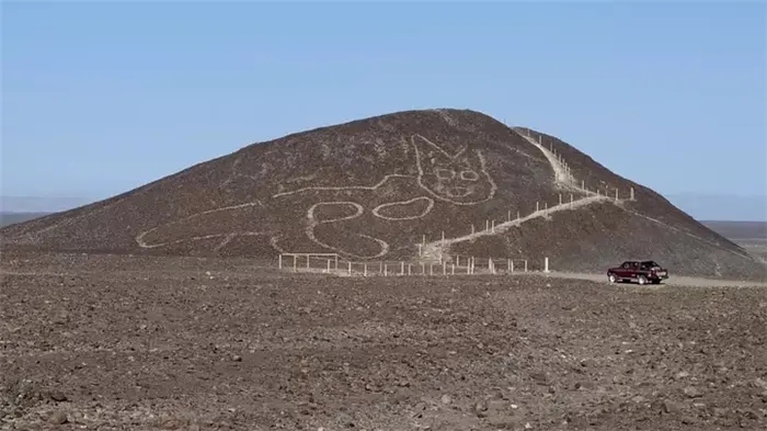 秘鲁的文化部证实,考古学家在纳斯卡 (Nazca) 的山坡上发现了巨型猫咪雕刻,这种纳斯卡线被联合国教科文组织列为世界遗产,科学家认为纳斯卡线是纳斯卡文明所创造,数量有上百个,以简单的线条呈现出各式各样动物的样子。这样的图案其实要从高处往下看才能看出图案,被认为可能是纳斯卡文明在安地斯山中进行祈雨仪式的重要角色之一。