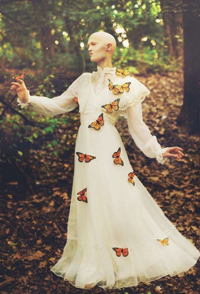该位28岁的女模患有罕见基因异常疾病外胚层增生不良症(Ectodermal Dysplasia),造成牙齿、指甲、毛孔、软骨和骨头无法正常生长。