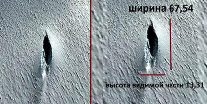 目前,俄罗斯UFO狂热者瓦伦丁-德格特雷维(Valentin Degterev)声称,南极洲发现一艘外星人飞船的失事残骸,飞船来自于“遥远的宇宙空间”。据悉,他是通过谷歌地球发现的。这个神秘椭圆状“物体”宽度为20米,长70米,英国南极考察队指出,图中的外星人飞船仅是裂沟阴影而已。