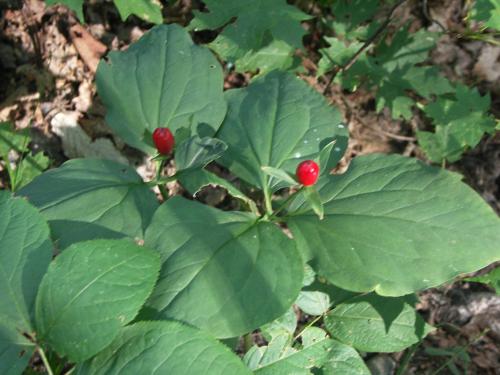 头顶一颗珠,珍惜濒危物种,国家三级保护植物,其顶上的红果叫“天珠”,地下的块茎叫“地珠”,均可入药,疗效奇特并有延年益寿之功效,故又名延龄草。