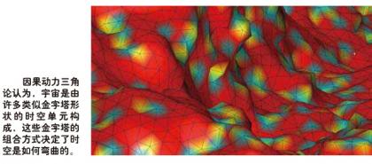 其他的科学家还发现,利用因果动力三角论――另一种独立的量子引力理论――也会得到类似的结论。因果动力三角论认为,宇宙是由许多类似金字塔形状的时空单元构成。这些金字塔的组合方式决定了时空是如何弯曲的,如同广义相对论里质量和能量决定了时空是如何弯曲的。