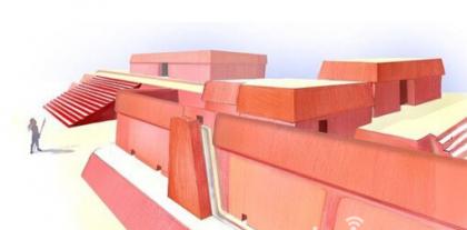 如图,这是艺术家以3D结构描绘的15号建筑体金字塔结构,在前景可看到在14号建筑体之前有一条排水道,14号建筑体可能包含着另一个墓室或者一个作为临时存放尸体的葬礼殿堂,然而这里显然遭到洗劫破坏,它的具体功能仍不清楚。
