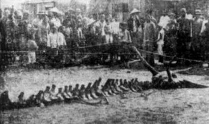政府还邀请多位经验丰富的老渔民辨认,没有人能认识,人们普遍认为是“龙”。大家都猜测,巨龙遭了天谴,被雷击之后;掉入芦苇中。
