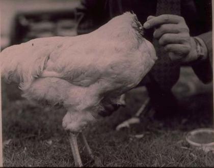 4.无头鸡麦克不死的消息传开,人们不禁啧啧称奇,它的名气建立起来。不死鸡尊容麦克在生物公司展览,它并且成为各式各样杂志和报纸的相片主题。