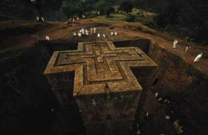 传说12世纪埃塞俄比亚第七代国王拉利贝拉梦中得神谕:“在埃塞俄比亚造一座新的耶路撒冷城,并要求用一整块岩石建造教堂”。于是拉利贝拉按照神谕在埃塞俄比亚北部海拔2600米的岩石高原上,动用2万人工,花了24年的时间凿出了11座岩石教堂,人们将这里称为拉利贝拉。从此,拉利贝拉成为埃塞俄比亚人的圣地。至今,每年1月7日埃塞俄比亚圣诞节,信徒们都将汇集于此。