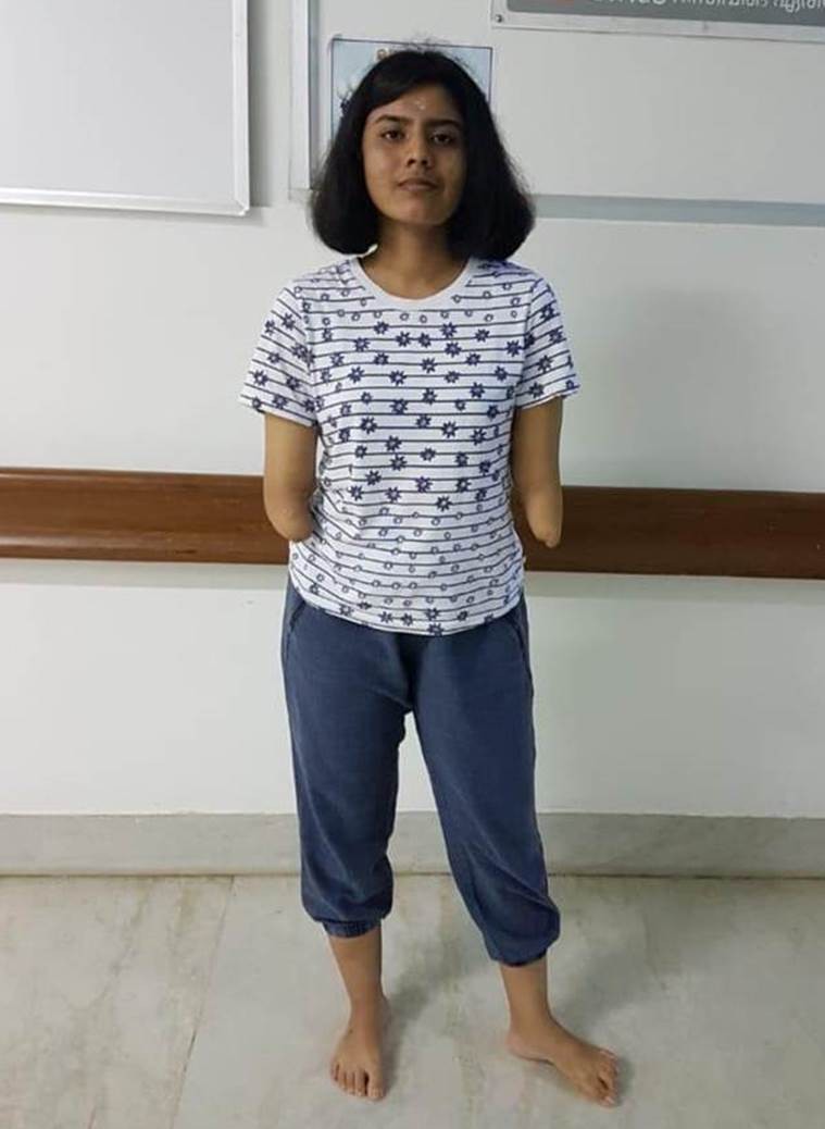 雪亚刚接受双臂移植手术后的照片/翻摄自The Indian Express,下同