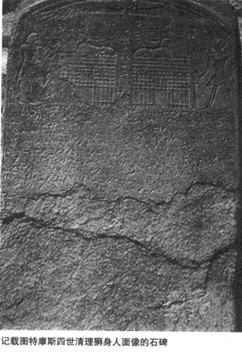 在历史上,它种被黄沙掩理至颈部,甚至到头部,直到法老图特摩斯四世时才将其清理出来。狮身人面像的两脚中间有一个石碑,石碑上记载着这个故事,在十八王朝的时候,就是3500年以前,这里全部埋了沙子,人们已经看不到雕像,100年以后,一个王子在这个地区打猎,休息的时候刚好坐在被沙土埋没的狮身人面像旁边。在睡梦中,他梦见狮身人像对他说:“你如果帮助我把我身上的沙子去掉,我会帮助你做埃及法老王。于是这个王子一醒过来,就赶快清理掉埋在狮身人面像身上的沙子。王子后来做了法老,他就是图特摩斯四世。这是古埃及历史上第一次清理斯芬克斯像。