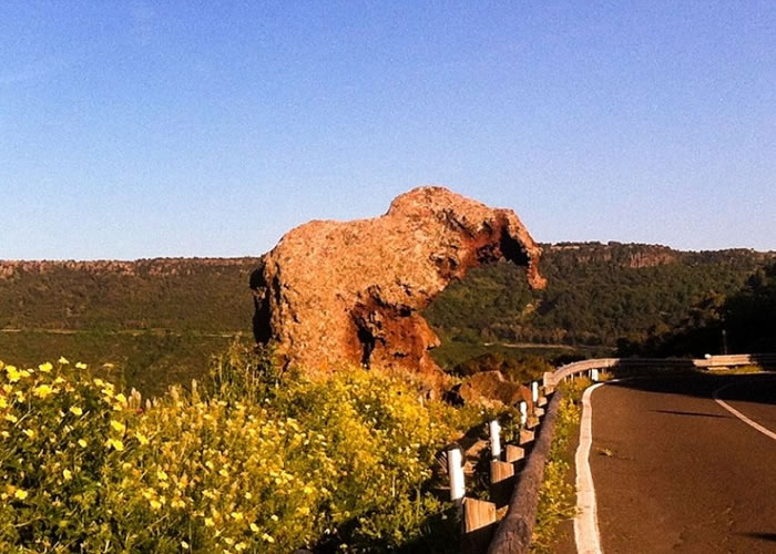 撒丁岛一条路边有一块形似大象的怪石。