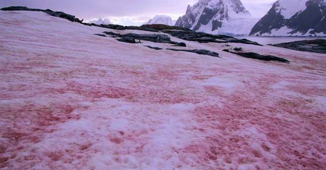 这种北极变色的冰雪被称作“粉雪”、“西瓜雪”。
