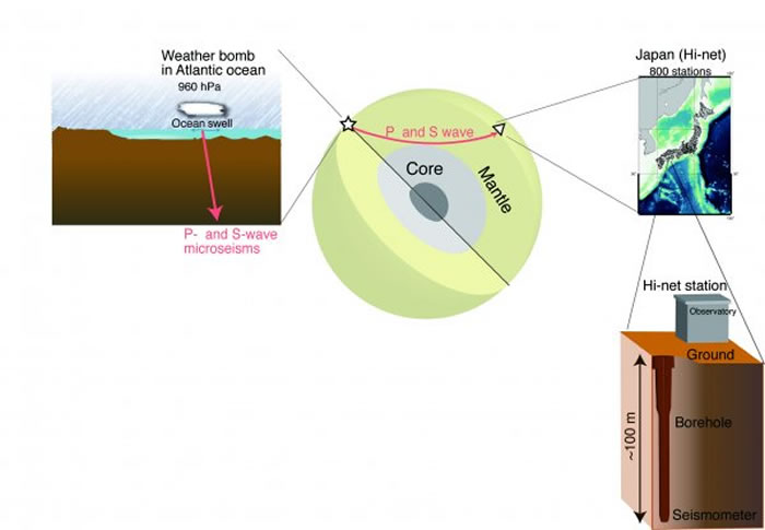 大西洋“天气炸弹”是一种严重、快速发展的风暴,它会引起海浪涌动,激起能进入海洋地壳的隐约且深入的震颤。这些细微的
