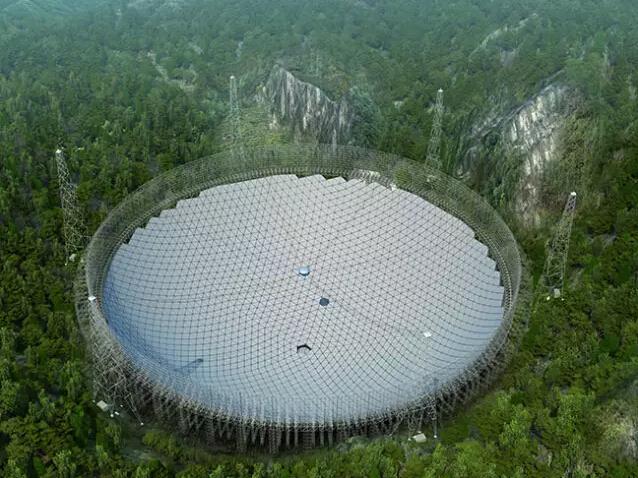 中国西南贵州,在形成于4500万年前的巨型天坑中,科学家与工程师们正在建造面积相当于30个足球场的世界最大单口