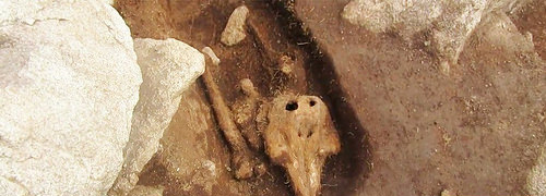 (Phys.org)在土耳其哥贝克力石阵(Göbekli Tepe)挖掘处发现的史前头骨,德国考古学研究所(Ger