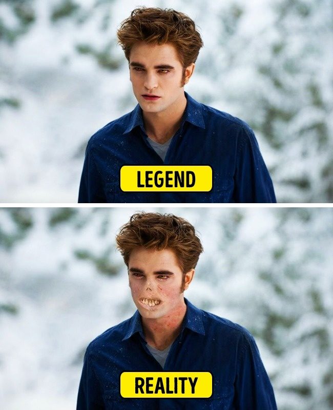 吸血鬼。(上:传说,下:真实。)吸血鬼的传说来自罕见的紫质症,患病机率只有20万之一,患者很怕接触到