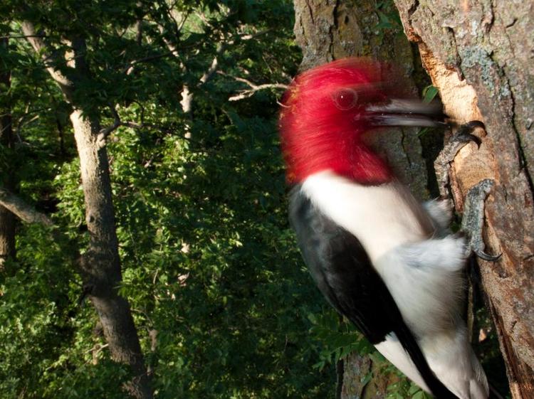 啄木鸟拥有又硬又尖锐的喙,让它们可以凿开树皮寻找食物。啄木鸟一秒可“啄木”20次,每次啄木时速高达25公里,每天平