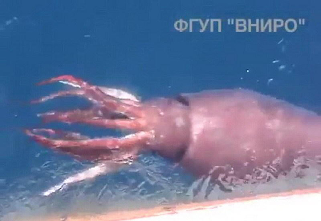 俄罗斯海域现巨型鱿鱼 或是传说中的海怪