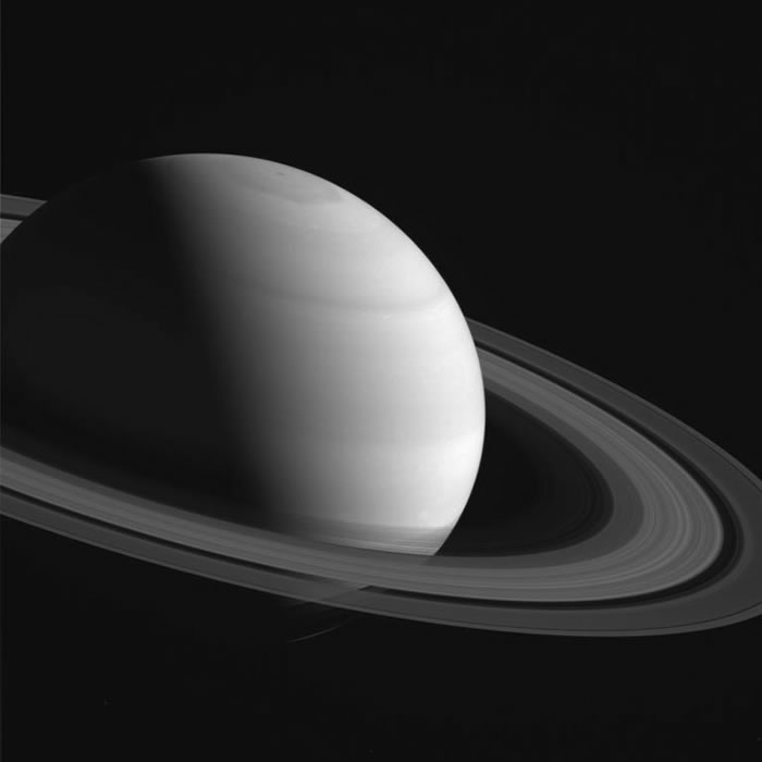 从这张卡西尼号所拍摄的照片中,可以看到土星最著名的土星环,和让科学家伤透脑筋的北极六角型喷流。 PH