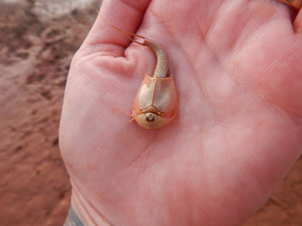 美国亚利桑那州(Arizona)北部今年夏天季风降雨多,导致数百只“三眼恐龙虾”出现,悠游在沙漠中的临时湖泊里。“