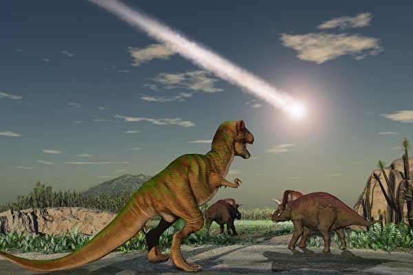 小行星撞击地球时的恐龙示意图。(Shutterstock)