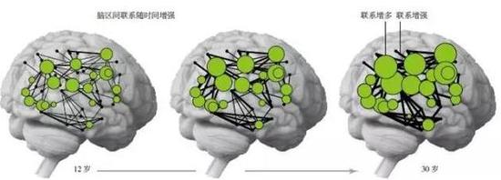 青少年大脑最显著的变化不是脑区的成长,而是神经元集群之间交流的增多。用图论分析技术分析磁共振成像扫描数据,显