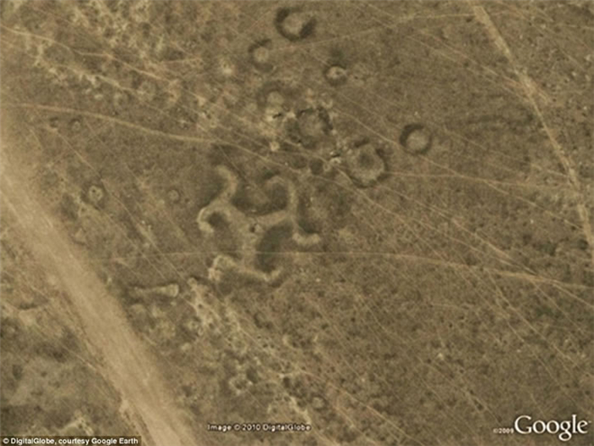 目前,从太空角度观测显示哈萨克斯坦图尔盖地区干草原上存在着“十字记号”图案,虽然该图案曾被德国纳粹使用,但