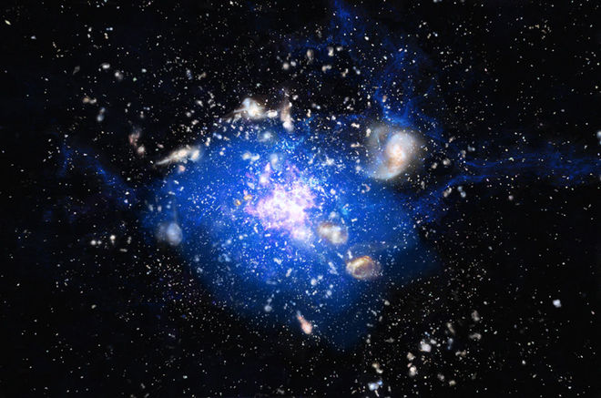 天文学家首次证实,在一个星系团的核心区域,亦即庞大黑洞存在的地方,有大量的恒星生成,这与其它星系团的情况迥然不同。