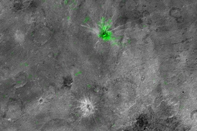 奥加纳环形山可能比较年轻,或者其下方有着丰富的氨冰来源,也可能是某个天体将氨冰正好带到奥加纳环形山附