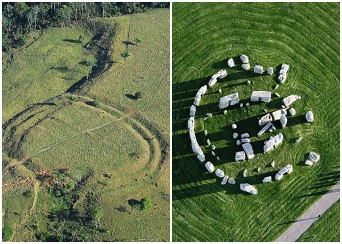 巴西两林的巨大图案(左图),与巨石阵(右图)有几分相似。